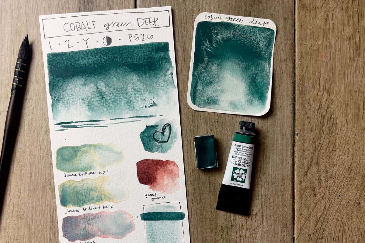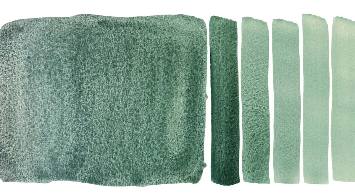Grazie alla sua granulazione marcata, il Cobalt Green Deep si presta a tecniche che sfruttano la sedimentazione del pigmento per creare dettagli e sfumature complesse. Se miscelato con Neutral Tint (229) o Indigo (046), permette di ottenere affascinanti verdi scuri, ideali per rappresentare mari in tempesta o cieli carichi di nubi.