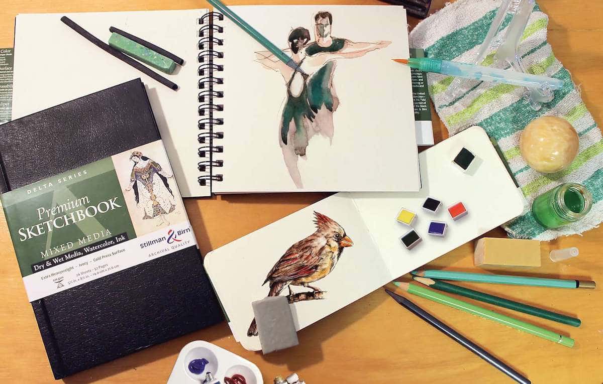 Ciascuno dei taccuini di cui abbiamo parlato in precedenza è in grado di lavorare bene sia con acquerelli, sia con inchiostri, per cui la scelta del supporto giusto è puramente personale. Va in base alle tue caratteristiche e a ciò che ti piace utilizzare.