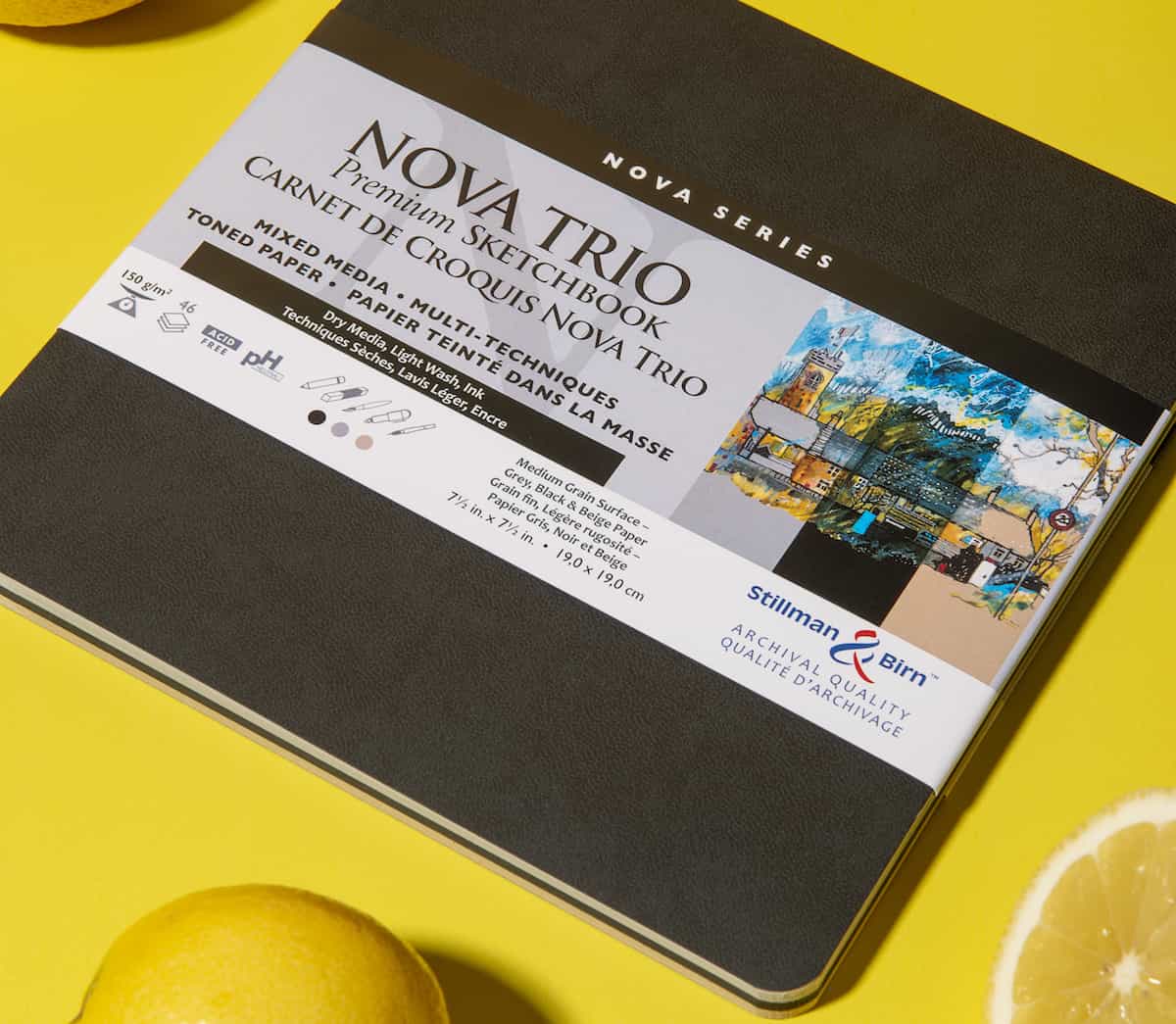 Per permettere di provare tutti i colori della serie Nova, Stillman&Birn ha realizzato il taccuino Nova Trio. Si tratta di uno sketchbook da 46 pagine, da utilizzare fronte retro per un totale di 92 facciate. Le pagine sono divise nelle 3 colorazioni, al suo interno trovi quindi 14 pagine beige, 14 grigie e 14 nere.