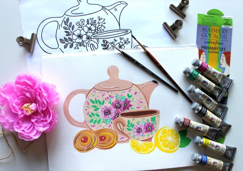 Il Tutorial di oggi è stato pensato per ritagliarsi un pomeriggio all’insegna dell’arte: dipingeremo un colorato Set da the accompagnato da dei dolcissimi biscotti, utilizzando le tempere Gouache Maimeri.