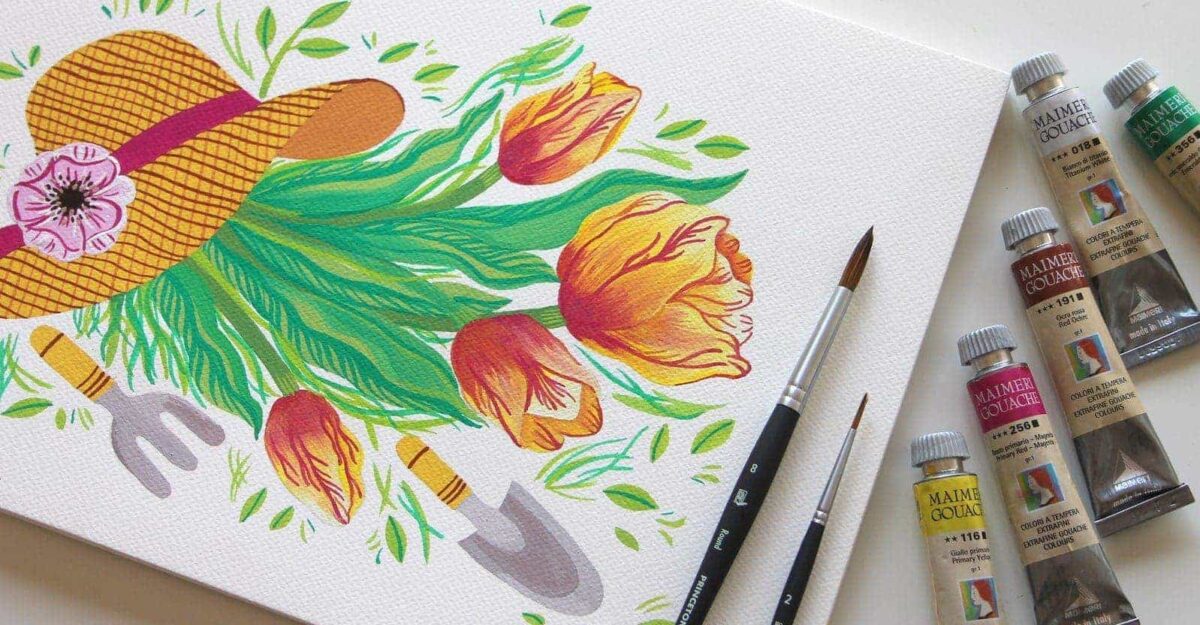 Oggi vi proponiamo un nuovo tutorial con le Tempere Extrafine Gouache Maimeri. Realizzeremo una tavola ispirata al giardinaggio e alla primavera! Andiamo a scoprire le caratteristiche di questi formidabili colori dal tono coprente e come utilizzarli.