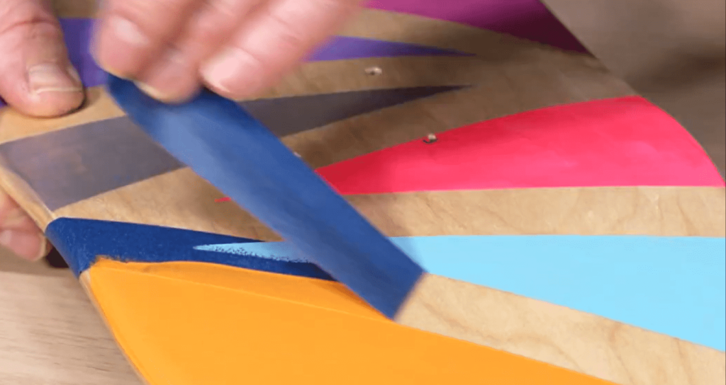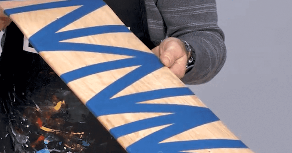 In questo caso dovremo servirci del nastro per la mascheratura e applicarlo sulla nostra superficie. Durante l’applicazione è molto importante farlo aderire bene alla superficie, questo passaggio, se eseguito correttamente, non permetterà al colore di infiltrarsi al di sotto dei bordi. Il nostro consiglio è quello di sovrapporre strisce di nastro per creare aree più ampie di spazio negativo.