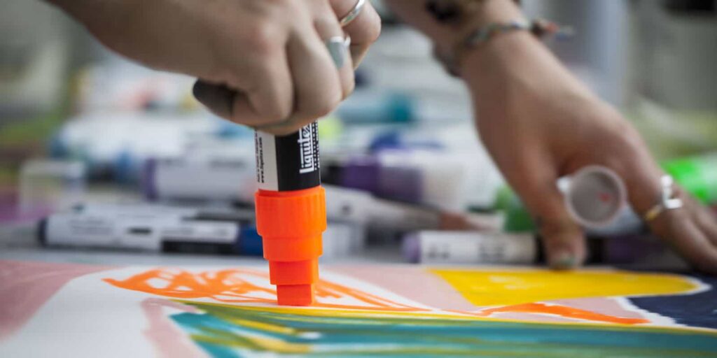 Questo step non è obbligatorio, ma riteniamo che un poco di colore in più, possa rendere il lavoro ancor più unico e singolare. In questo caso potrai utilizzare gli Acrylic Marker Liquitex per aggiungere ulteriori dettagli e motivi alla tua opera!