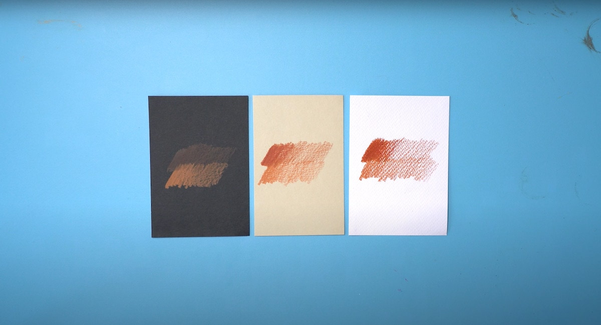 La caratteristica di questi colori è che hanno un’alta percentuale di pigmento. Infatti, anche utilizzandoli su carte diverse, il colore rimane intenso. Si vede che sono delle matite di altissima qualità. Come puoi vedere dal video e dall’immagine qui sotto, il foglio bianco, caratterizzato da grana ruvida, permette di vedere la resa alla perfezione.