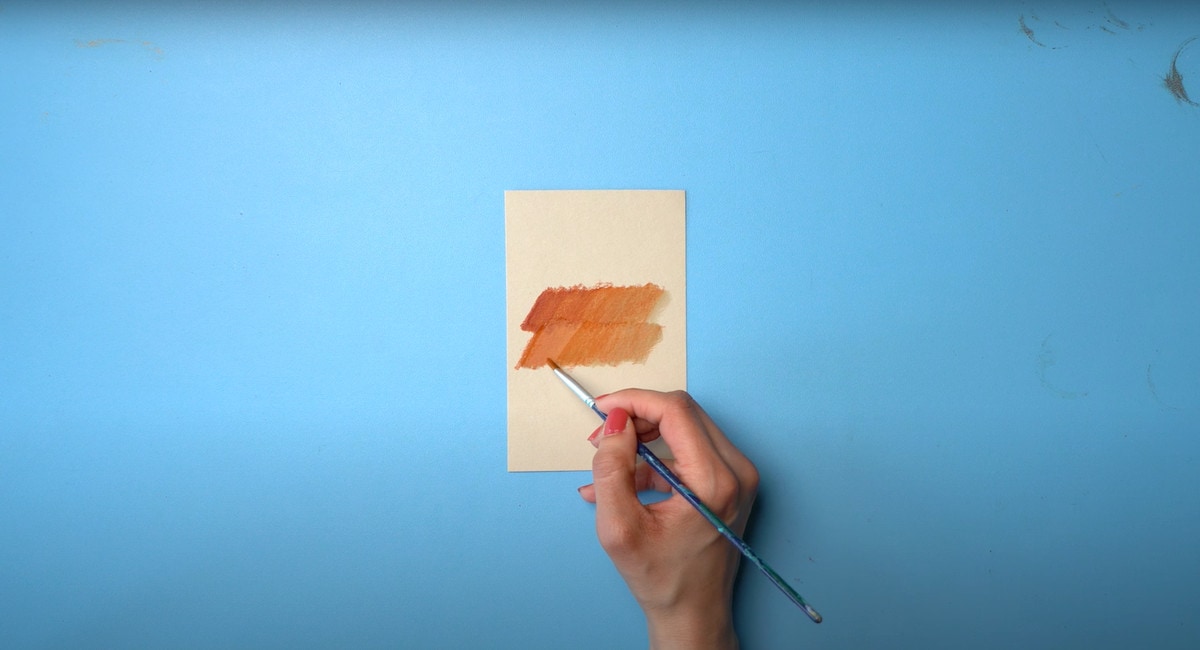 All’interno del paragrafo sui materiali abbiamo accennato all’utilizzo del Tintorsetto, ora capirai come mai. Siccome le matite hanno una base oleosa, puoi usare un solvente per sciogliere il colore. Se vuoi una finitura più morbida questa tecnica può andare bene. Il colore risulta vellutato e uniforme. La matita si comporta quasi come fosse un olio.