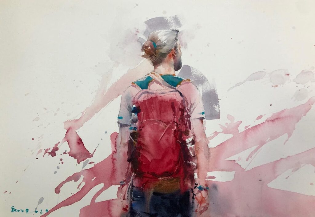 Ho sempre cercato di imparare e non mi sono preoccupato di creare progetti. Mi sono sempre visto come uno studente eterno. Ho studiato molto disegno e pittura, varie tecniche, dal pastello ad olio, ma niente che mi appassionasse … finché non ho conosciuto l’acquerello. Insomma, se dovessi evidenziare un primo progetto, sarebbe i “Turisti”. Non è un progetto, ma è stato pensato con l’anima e ha fatto conoscere il mio lavoro in varie parti del mondo.