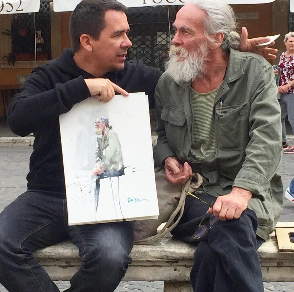 Acquerellista con un talento innegabile, è da anni ambasciatore del prestigioso produttore di colori ad acquarello Winsor & Newton. Appassionato di questa tecnica, trasforma turisti e cittadini nei protagonisti del suo lavoro, raccontando sempre una storia attraverso di loro e mostrando una tecnica precisa. Importante artista sulla scena internazionale che tiene workshop in tutto il mondo.