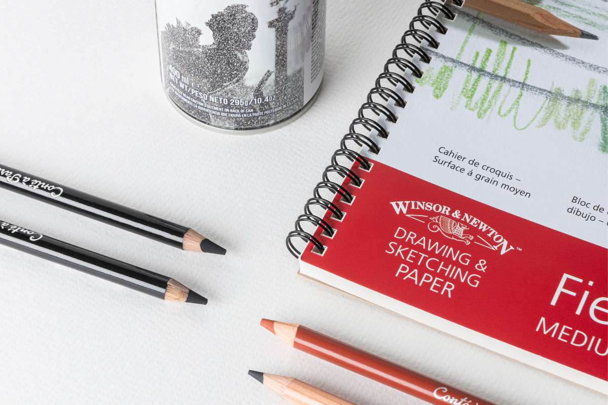 Il kit include un album per schizzi A4 spiralato sul lato corto, con 50 fogli da 96 gr/mq di Winsor&Newton, perfetto per lavorare con tecniche secche come grafite, pastello e carboncino. La carta, dalla consistenza morbida, offre un’ottima adesione dei materiali, garantendo risultati precisi e professionali.