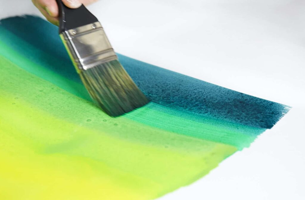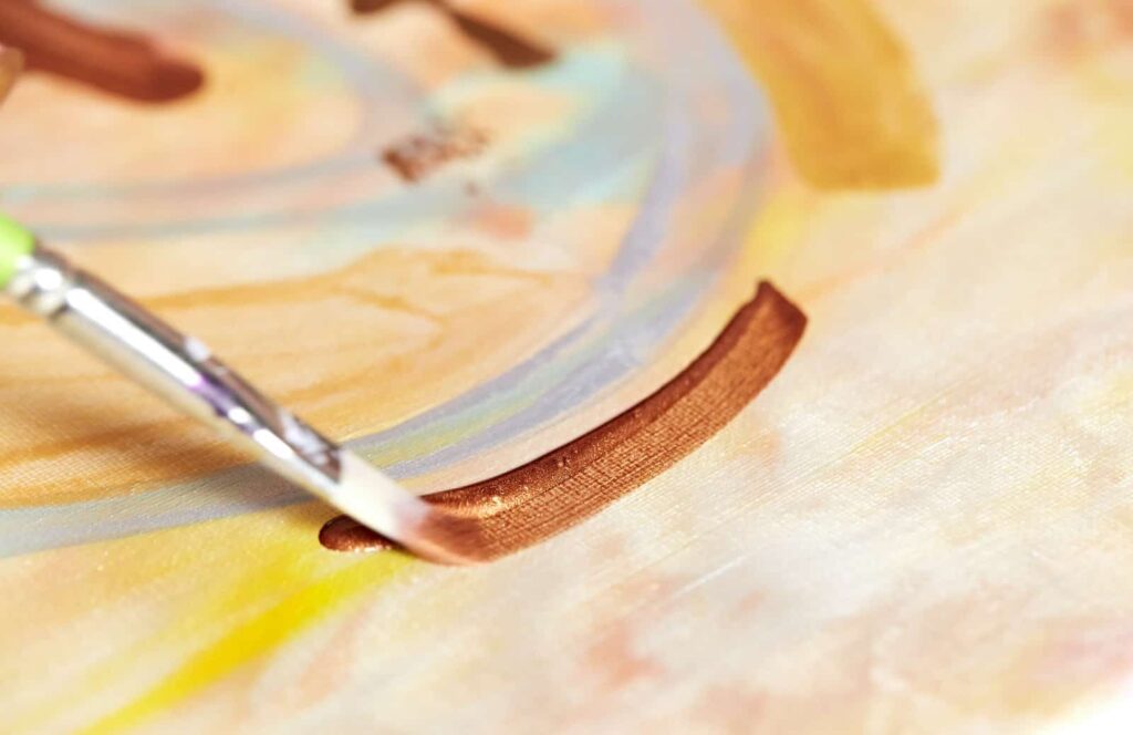 • Bagnato su bagnato: quasi come fossero acquerelli, è possibile stendere gli acrilici liquidi su un fondo bagnato con una pennellessa. Il colore si disperderà nell’acqua, creando macchie di colore e forme inaspettate