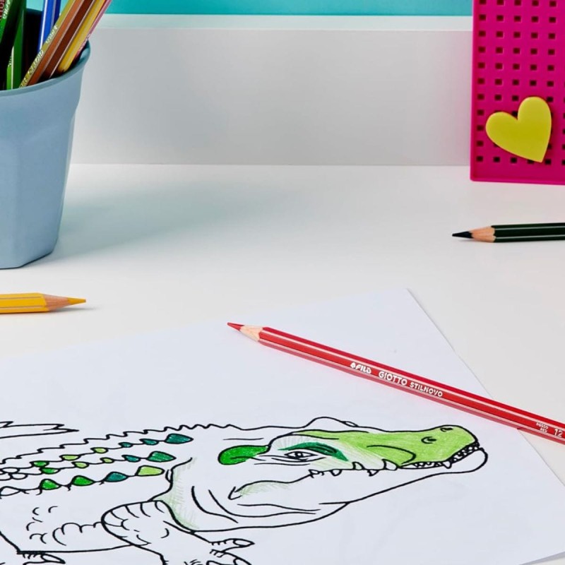 Le matite colorate Giotto Stilnovo sono progettate per offrire un'esperienza di disegno ottimale per bambini e bambine in età scolastica. Ogni matita è dotata di uno spazio per scrivere il proprio nome, rendendola perfetta per l'uso scolastico e per evitare confusione tra i compagni di classe.