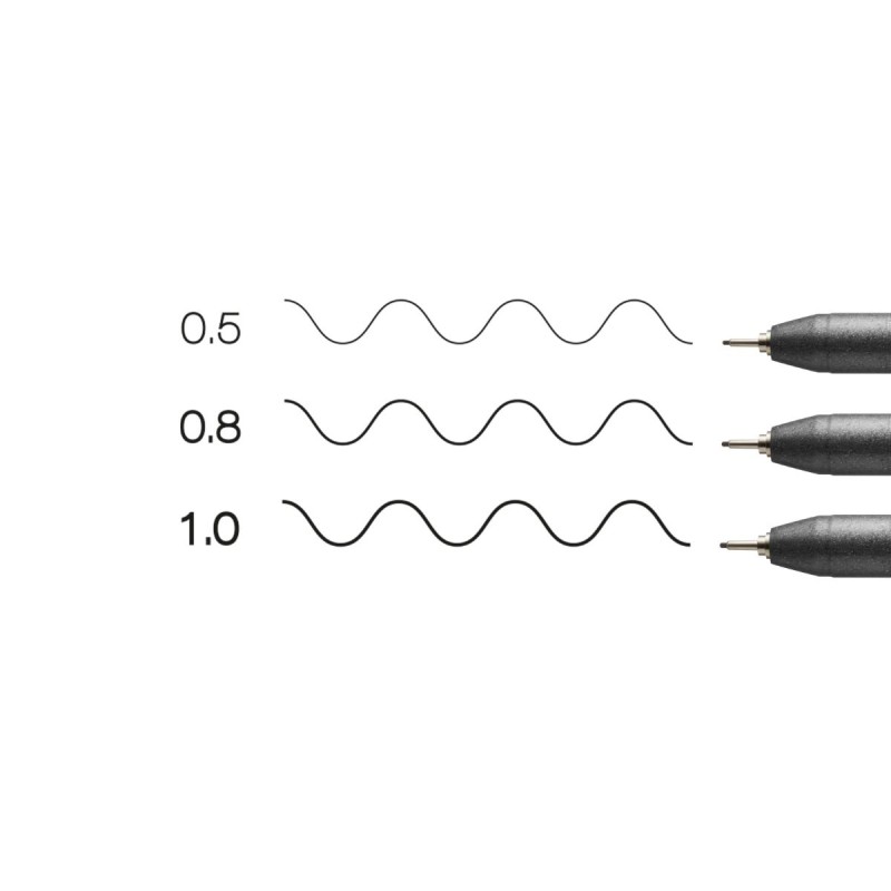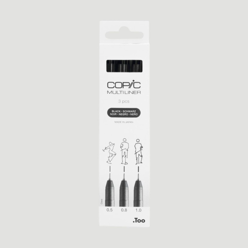 Il Set 3 Copic Multiliner Fine, colore nero include tre fineliner di spessore differente, selezionati per offrire una varietà di tratto versatile, adatta a ogni tipo di progetto creativo. Ecco cosa troverai all’interno del set: