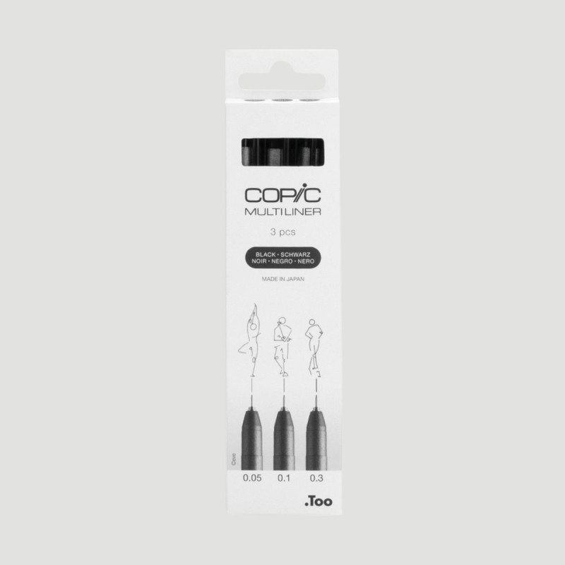 Il Set 3 Copic Multiliner Fine, colore nero include tre fineliner di spessore differente, selezionati per offrire una varietà di tratto versatile, adatta a ogni tipo di progetto creativo. Ecco cosa troverai all’interno del set: