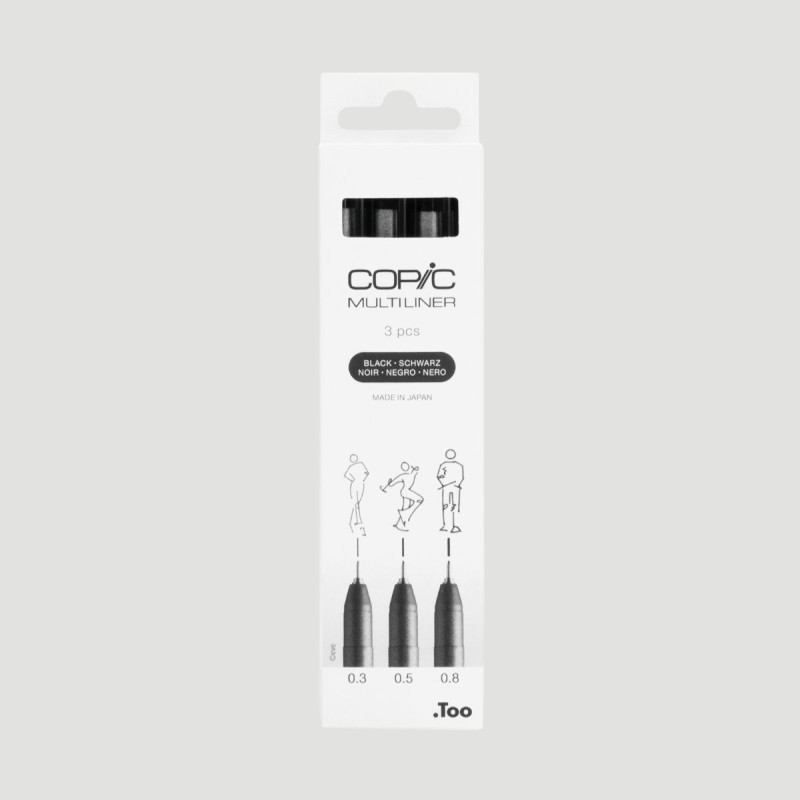 Il Set 3 Copic Multiliner Fine, colore nero include tre fineliner di spessore differente, selezionati per offrire una varietà di tratto versatile, adatta a ogni tipo di progetto creativo. Ecco cosa troverai all’interno del set: