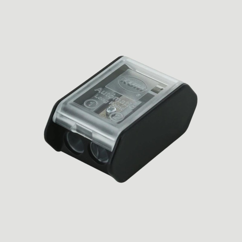 Temperino AS3 KUM. Il Temperino AS3 KUM è progettato per garantire punte di matita perfettamente affilate e lunghe. Dotato di un meccanismo di arresto automatico e due lame di ricambio, offre una nitidezza eccezionale e una precisione assoluta. La mina viene affilata in due fasi, garantendo dettagli precisi e raffinati nel tuo lavoro artistico.