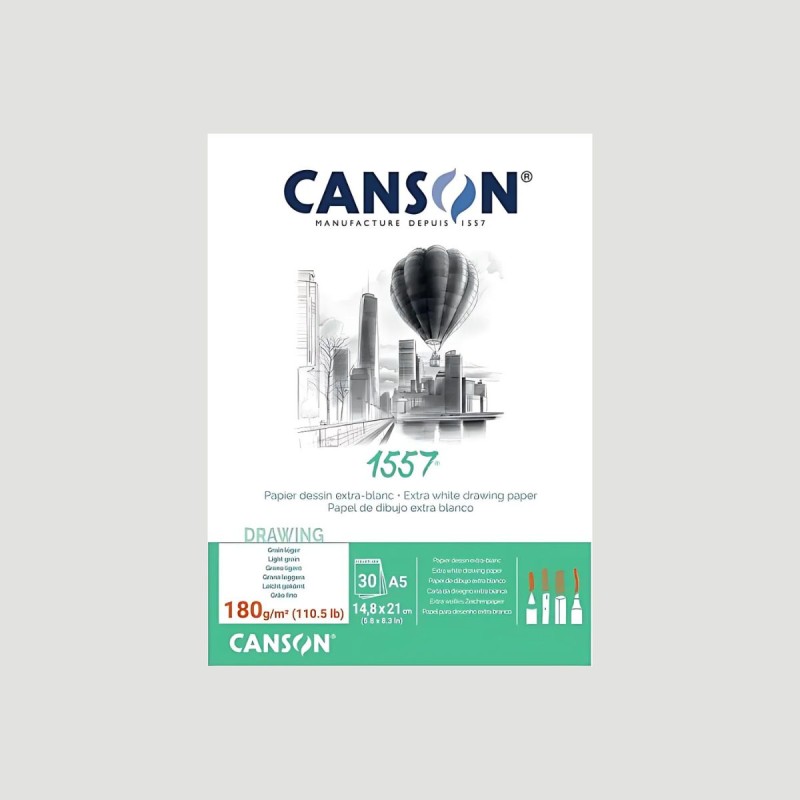 L'album da disegno Canson 1557® da 180gr è perfetto per schizzi e disegni tecnici. Con una grana sottile e bilanciata, offre un controllo eccellente del tratto, resiste alle cancellature e valorizza i colori grazie al bianco brillante della carta.