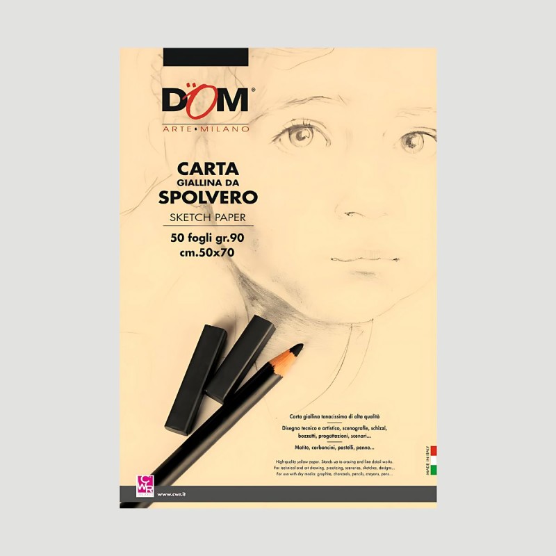 Blocco Carta da Spolvero, Formato 50x70cm. Con la sua carta di color giallo tenue, è perfetto per schizzi, disegni e bozzetti. Ideale per studenti e studentesse, offrendo una superficie liscia e versatile che valorizza ogni tratto e dettaglio.