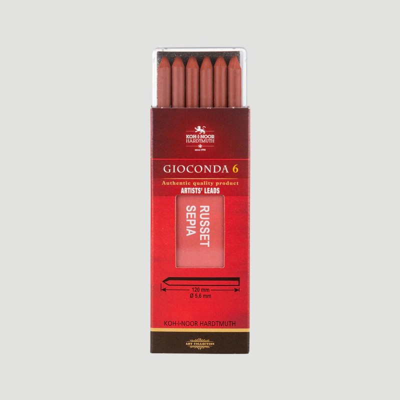 Astuccio 6 Mine Gesso Sanguigna Koh-I-Noor. Astuccio con 6 mine di gesso sanguigna Koh-I-Noor, sezione tonda da 5,6 mm, gradazione morbida. Ideali per disegni espressivi e sfumature delicate.