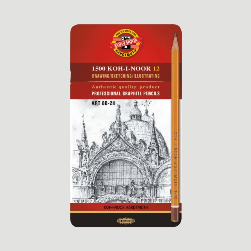 Set 12 Matite in grafite Art Koh-I-Noor. Si tratta di matite dotate di grafite di alta qualità, con legno di cedro resistente e facilmente temperabile.