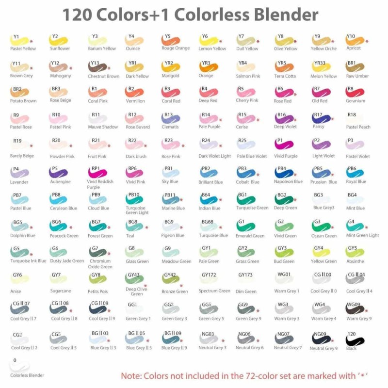 Set 120 Marker Ohuhu Honolulu! Si tratta di marker caratterizzati da doppia punta, fine e a pennello, e inchiostro a base d'alcol. Si asciugano velocemente, non creano macchie o sbavature, e rendono i dipinti particolarmente vivaci.