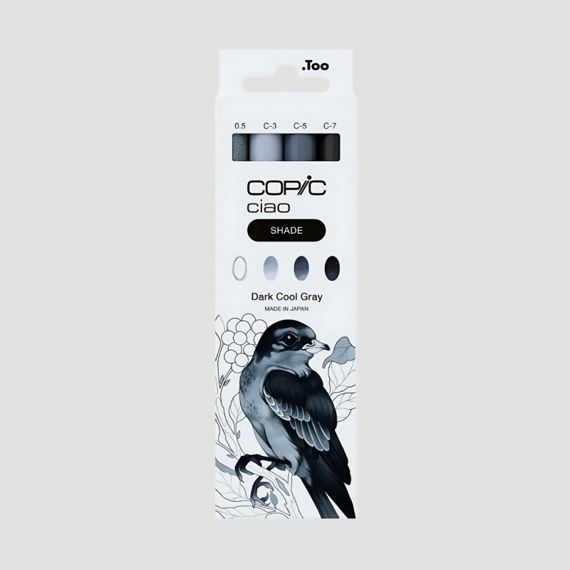 Il set include tre marker Copic Ciao in toni di grigio freddo scuro: Cool Gray No. 3, Cool Gray No. 5 e Cool Gray No. 7. Questi toni ti permettono di creare una varietà di sfumature e contrasti nelle tue opere.