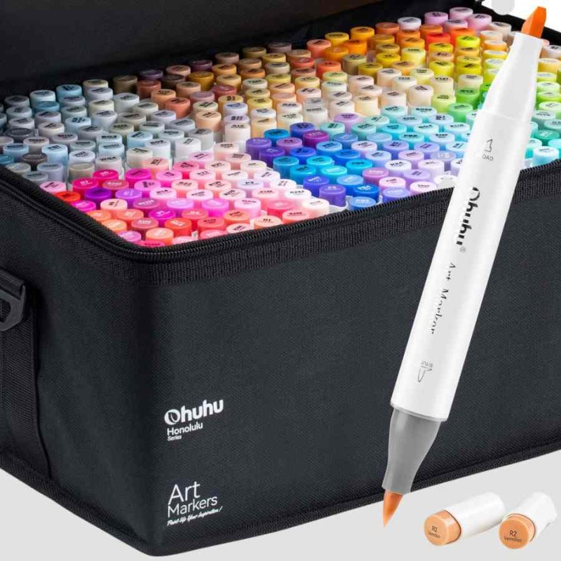 Set 320 Marker Ohuhu Honolulu, Inchiostro a Base Alcol Doppia Punta Scalpello e Pennello. Questi pennarelli artistici presentano un design innovativo con doppia punta: punta a pennello e punta a scalpello. Scopri un doppio divertimento nell'arte, spaziando tra tratti delicati e linee audaci. L'inchiostro di alta qualità offre una facile miscelazione senza sbavature, garantendo risultati uniformi anche per i principianti.