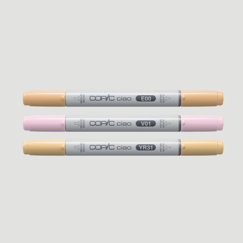 I marker Copic Ciao sono dotati di doppia punta, una a pennello, ideale per sfumature morbide e ampie, e una a scalpello, ottima per aggiungere dettagli o texture. Vengono realizzati con inchiostri a base di alcol, sono ricaricabili e le punte possono essere sostituite, assicurando una lunga durata del prodotto.