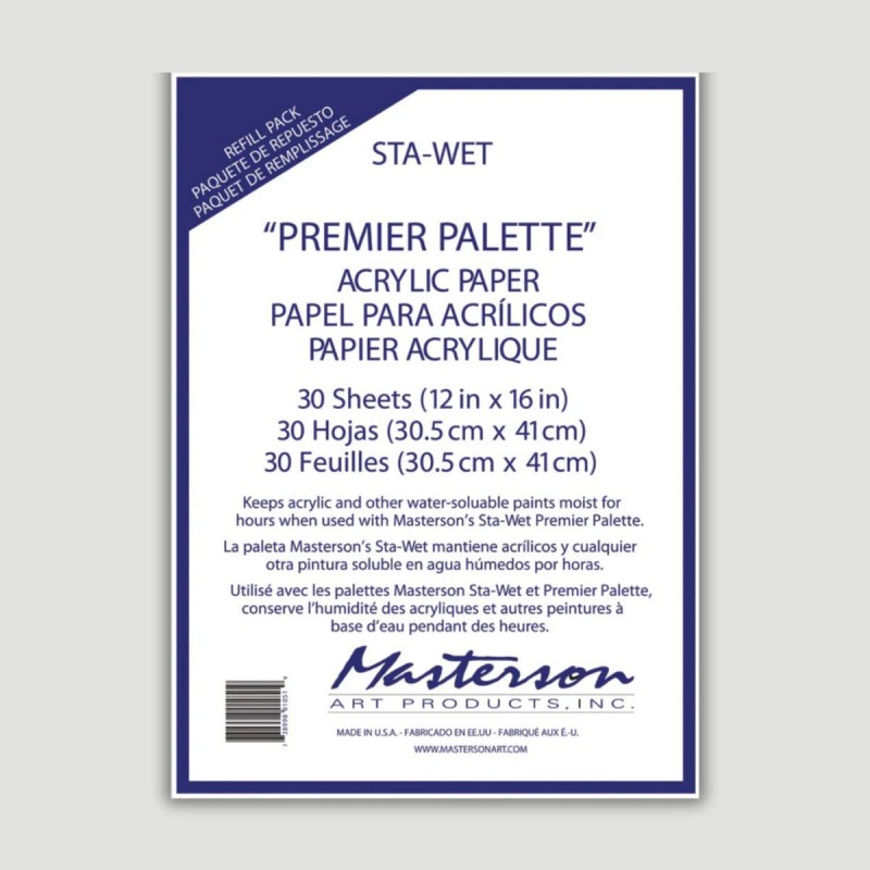 Confezione 30 Fogli per Wet Palette Masterson. Confezione da 30 fogli di carta permeabile per Wet Palette Masterson. Mantiene umidi gli acrilici per giorni. Riutilizzabile e compatibile solo con il sistema Sta-Wet.
