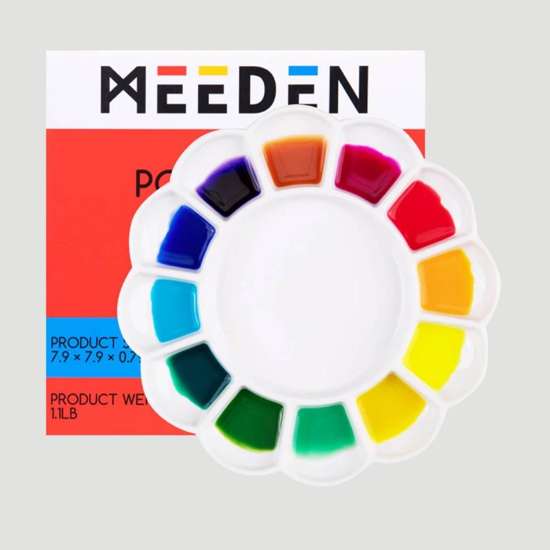 La tavolozza tonda Meeden in porcellana è uno strumento indispensabile per pittori, illustratori e creativi. Realizzata in porcellana ecologica premium, consente una miscelazione precisa dei pigmenti, mostrando fedelmente i colori reali. La sua superficie liscia e non porosa è facile da pulire, anche solo con acqua.