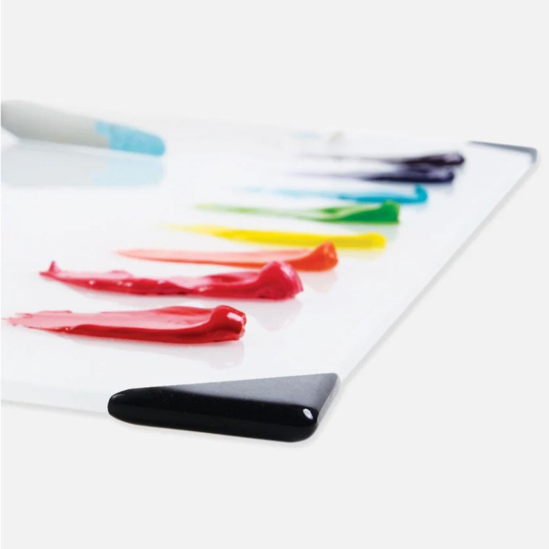 Tavolozza in Vetro Temperato Bianco POSH® Masterson. Tavolozza in vetro temperato bianco POSH® Masterson con fondo opaco impermeabile. Ottima visibilità dei colori e facile pulizia. Disponibile in 3 misure.