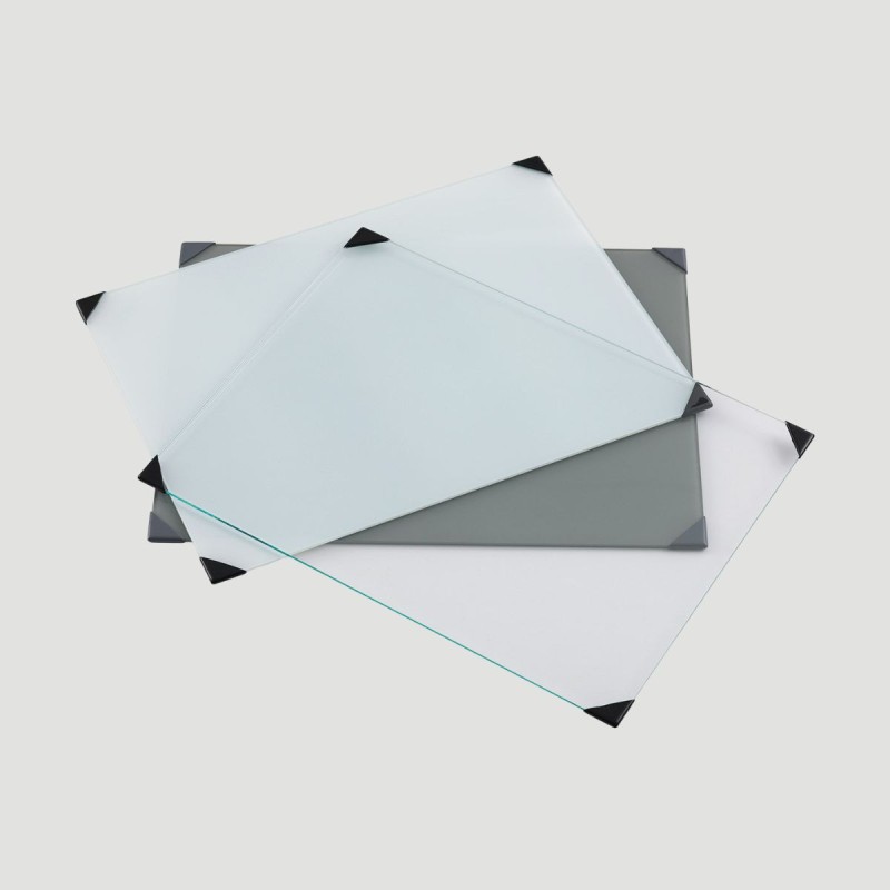Questa versione trasparente è particolarmente adatta per chi desidera utilizzare la tavolozza sopra una superficie colorata o stampata, o per artisti che desiderano personalizzare lo sfondo della propria area di miscelazione. Grazie alla sua trasparenza cristallina, è perfetta anche per tecniche di monoprinting o come piano di lavoro creativo. La superficie in vetro temperato è: