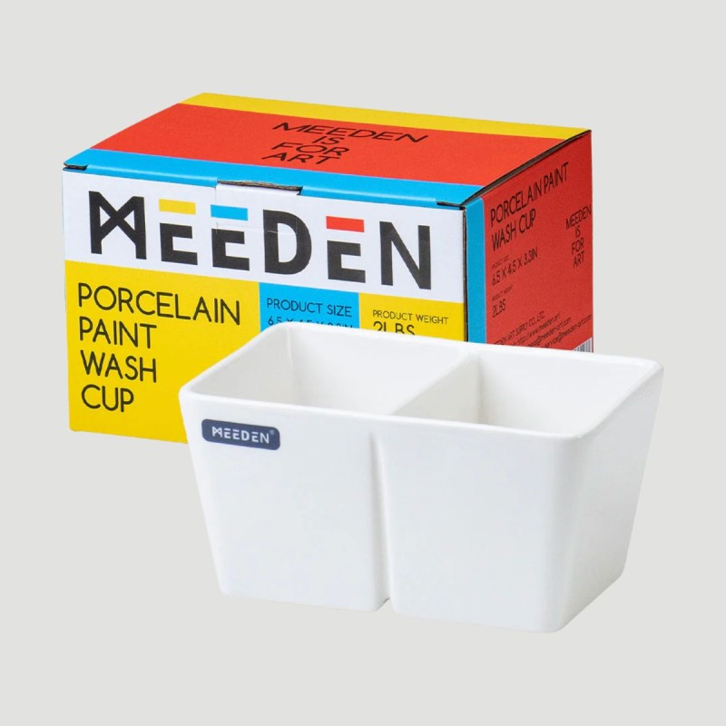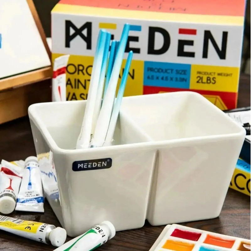 Vaschetta in Porcellana per Lavaggio Pennelli Meeden. Vaschetta Meeden in porcellana bianca da 600 ml con doppio scomparto per lavare e organizzare i pennelli. Stabile, liscia e facile da pulire. Ideale per acquerello, inchiostro e tecniche ad acqua.