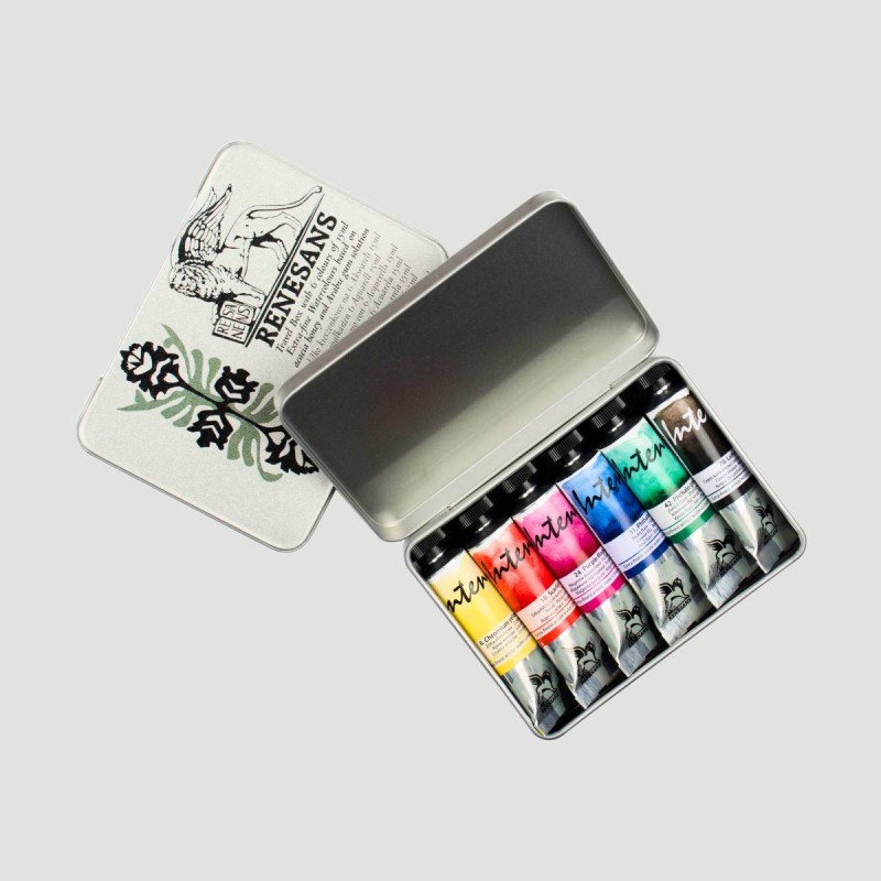 Set 6 Acquerelli Extra Fini Intense Water Renesans. Set da 6 tubetti da 15ml di Acquerelli Extra Fini Intense Water Renesans, realizzati con pigmenti puri, miele naturale e gomma arabica del Kordofan. Colori intensi, luminosi e professionali.