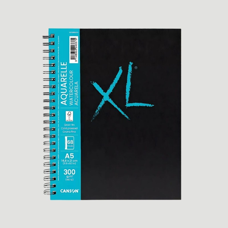 Album spiralato Canson XL® Aquarelle Book, carta da 300g/m² a grana fine, ideale per acquerello e tecniche umide, resistente e perfetto per studenti e appassionati.