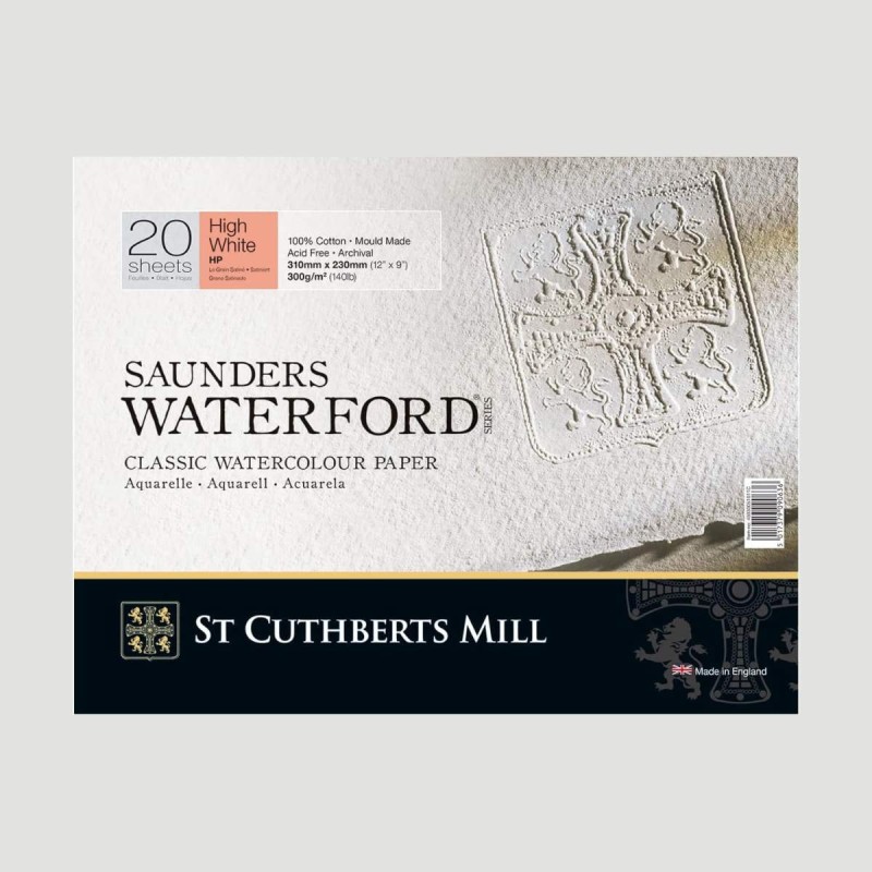 Blocco Saunders Waterford a grana satinata, la carta perfetta per mettere in risalto i tuoi acquerelli! 20 fogli da 300 grammi, perfetti per i lavori dove il colore ed i dettagli sono i protagonisti. 100% cotone e 100% acid free. Colore Extra White.