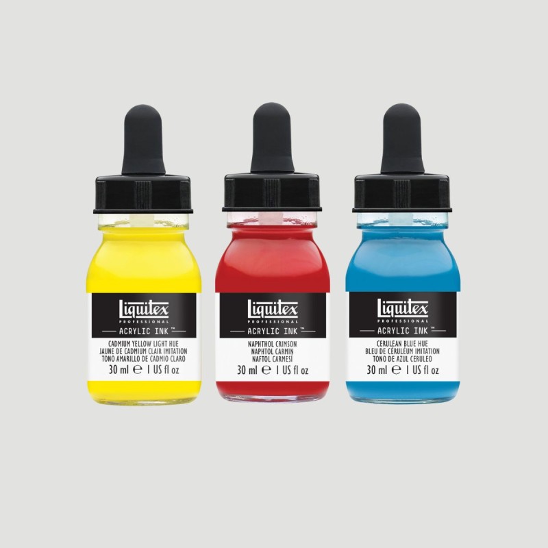 Set Acrilico Ink COLORI VIVACI! by Liquitex, selezione dei 3 Colori più vivaci della gamma Liquitex creati con finissimi pigmenti puri. Per Aerografo, Calligrafia, Acquerello, Tessuto e in molti altri campi...