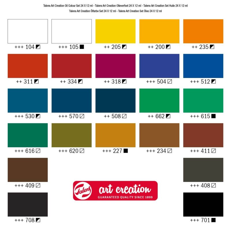 I colori a olio Talens Art Creation sono noti per la loro versatilità e intensità. Combinando pigmenti di alta qualità con olio vegetale, questi colori offrono una brillantezza e una profondità cromatica eccezionale.