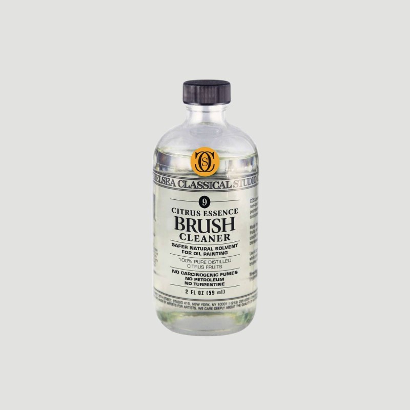 Detergente per Pennelli a Base di Essenza di Agrumi Chelsea Classical Studio. Una soluzione naturale e sicura per pulire i pennelli. A base di agrumi distillati al 100%, è privo di fumi tossici e ha un aroma fruttato. Delicato sulle setole, prolunga la vita dei pennelli ed è più efficace dei solventi tradizionali.