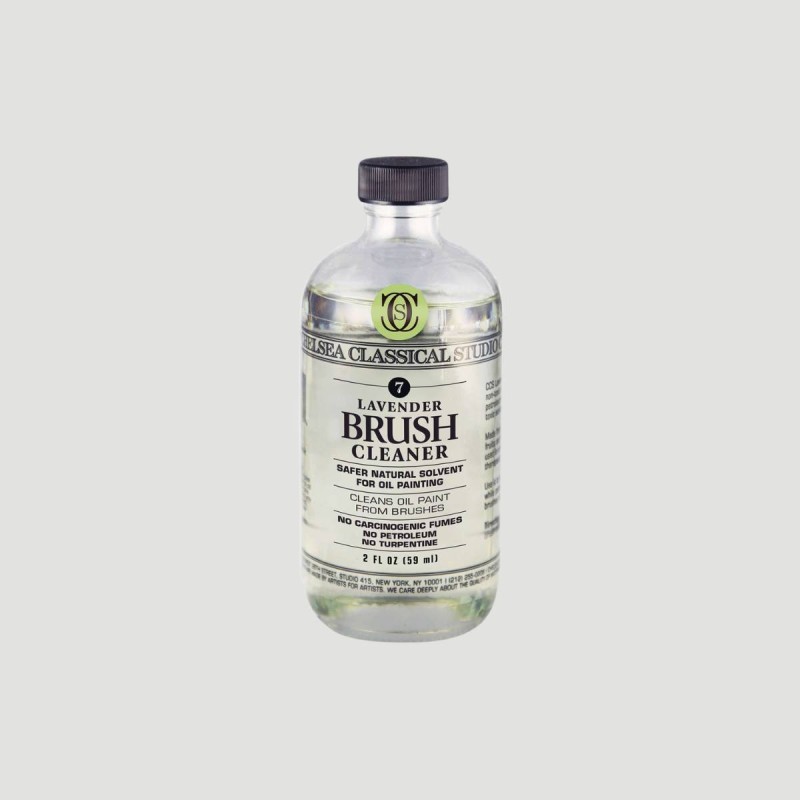 Detergente per Pennelli alla Lavanda Chelsea Classical Studio. Un'alternativa sicura e naturale ai solventi tradizionali. A base di oli essenziali vegetali, è efficace nella pulizia e delicato sulle setole. Non tossico, privo di fumi nocivi e dal profumo floreale, è perfetto per mantenere uno studio più salubre.