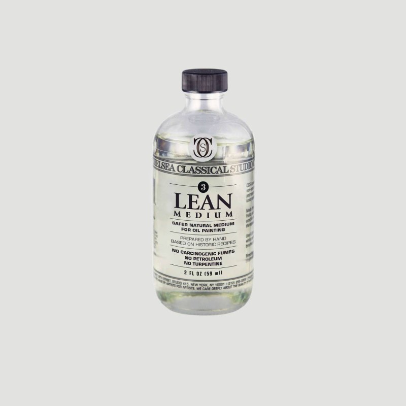 Medium Magro per Colori a Olio Chelsea Classical Studio. Ideale per i primi strati nella pittura a olio, accelerando l’asciugatura e migliorando la stesura dei colori. Composto da olio di lino purificato e essenza di lavanda spike, è un'alternativa sicura e naturale ai solventi tradizionali. Perfetto per la tecnica "grasso su magro".