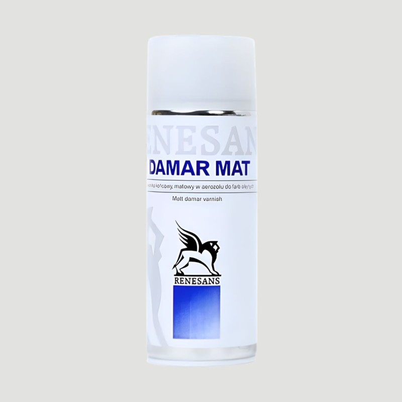 Vernice Finale Damar Spray Renesans, Effetto Opaco: finitura tradizionale a base di resina damar in pratico formato spray, ideale per opere a olio. Riduce i riflessi, uniforma l’opacità e crea un film protettivo omogeneo senza segni di pennello. Formulata per preservare le sfumature e limitare l’ingiallimento; reversibile con solventi idonei da restauro.