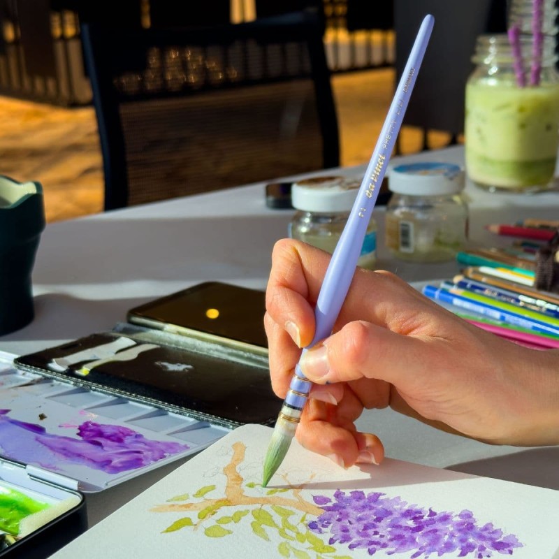 Il Pennello Lilla Pretty Lili Edition Serie 493 rappresenta l’evoluzione naturale della linea Pretty Pink, mantenendo lo stesso livello di eccellenza tecnica e arricchendolo con una nuova veste cromatica. È pensato per acquerellisti che desiderano uno strumento affidabile, capace di coniugare praticità, performance e un tocco di stile personale, distinguendosi non solo sul foglio ma anche nel proprio corredo artistico.