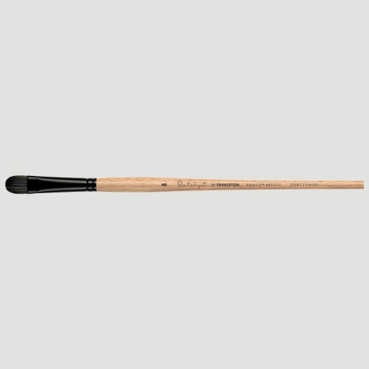 Tutti i pennelli appartenenti alla gamma Catalyst sono realizzati con filato sintetico Polytip, una grandissima innovazione da parte dell'azienda americana Princeton. La punta è rigida e reattiva, capace di trattenere una buona quantità di colore e in grado di replicare perfettamente la tipica irregolarità della setola naturale.
