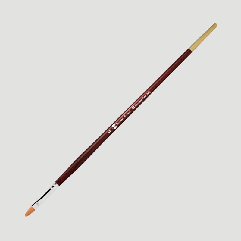 Pennello Sintetico Oro Borciani e Bonazzi Punta Lingua di Gatto Manico Lungo, Serie 83, un'opera di precisione e qualità. Dotato di una punta lingua di gatto in filato oro fine e un manico lungo in legno laccato terra rossa, questo pennello è un compagno essenziale per gli artisti che cercano leggerezza, precisione e versatilità nel loro lavoro.