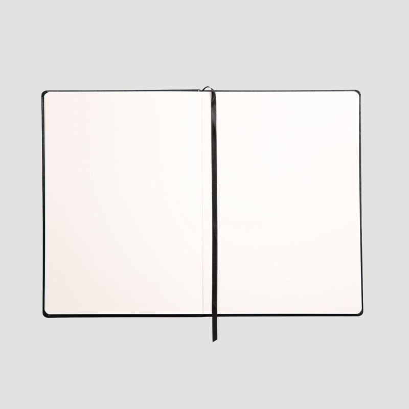 • Rilegatura su lato lungo, con chiusura ad elastico e segnalibro in nastro